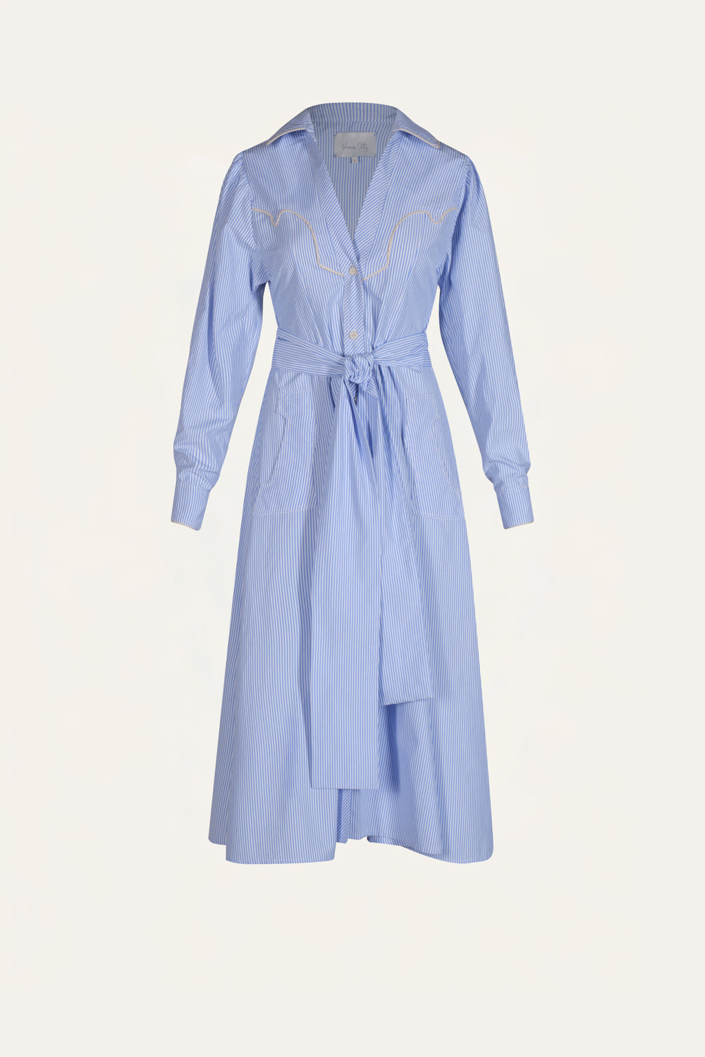 Styling Notes:A cotton shirtdress featuring a defined waist with a sash belt and classic button-down...